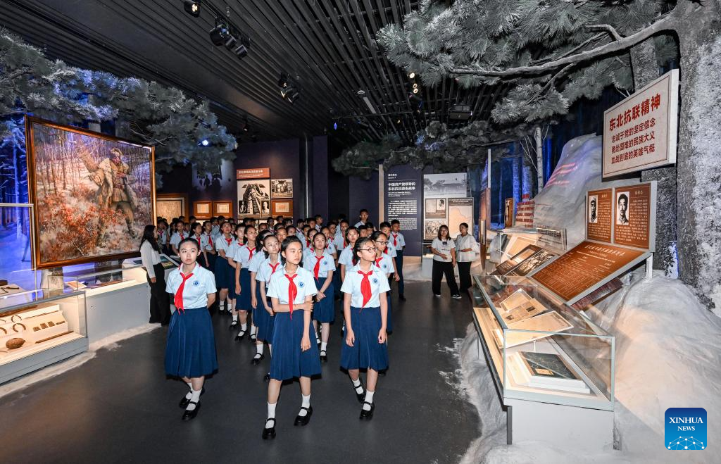 Students visit an exhibition themed "For National Liberation and World Peace" in Beijing, capital of China on July 7, 2025. China on Monday held a ceremony to mark the 88th anniversary of the start of the entire nation's resistance against Japanese aggression.