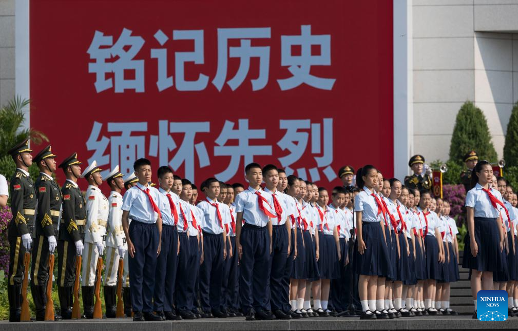 Students attend a ceremony to mark the 88th anniversary of the start of the entire nation's resistance against Japanese aggression, in Beijing, capital of China, on July 7, 2025. China on Monday held a ceremony to mark the 88th anniversary of the start of the entire nation's resistance against Japanese aggression.