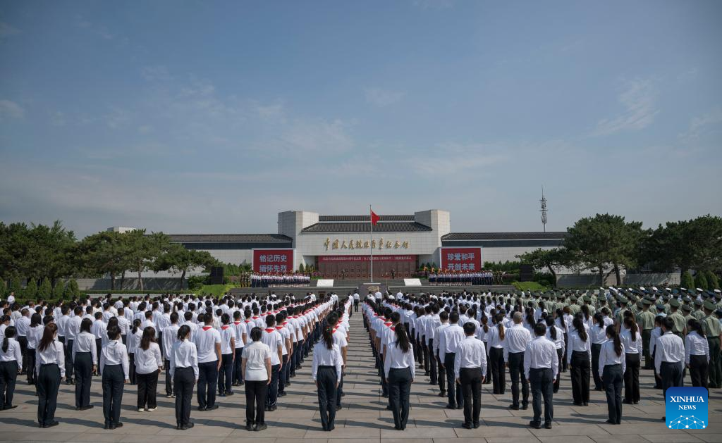 This photo taken on July 7, 2025 shows a ceremony to mark the 88th anniversary of the start of the entire nation's resistance against Japanese aggression, in Beijing, capital of China. China on Monday held a ceremony to mark the 88th anniversary of the start of the entire nation's resistance against Japanese aggression.
