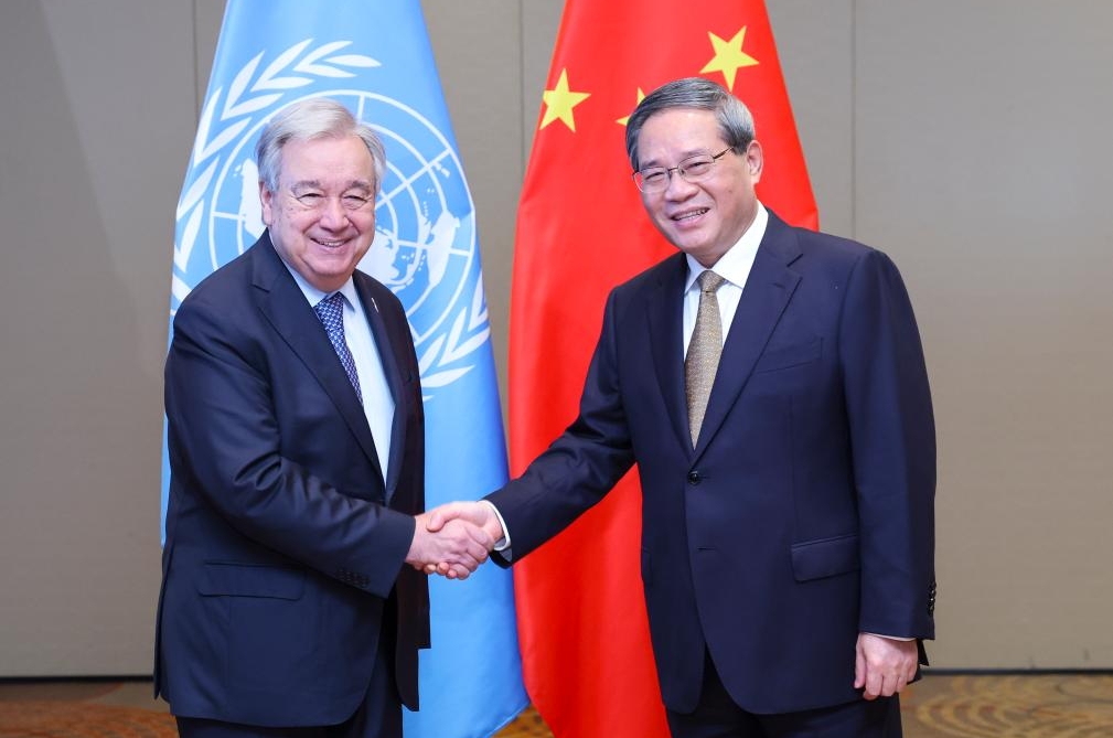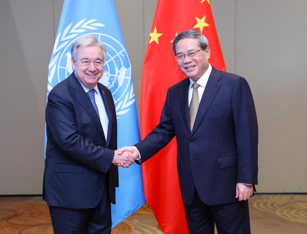 Li made the remarks in his meeting with UN Secretary-General Antonio Guterres on the sidelines of the 17th BRICS Summit.