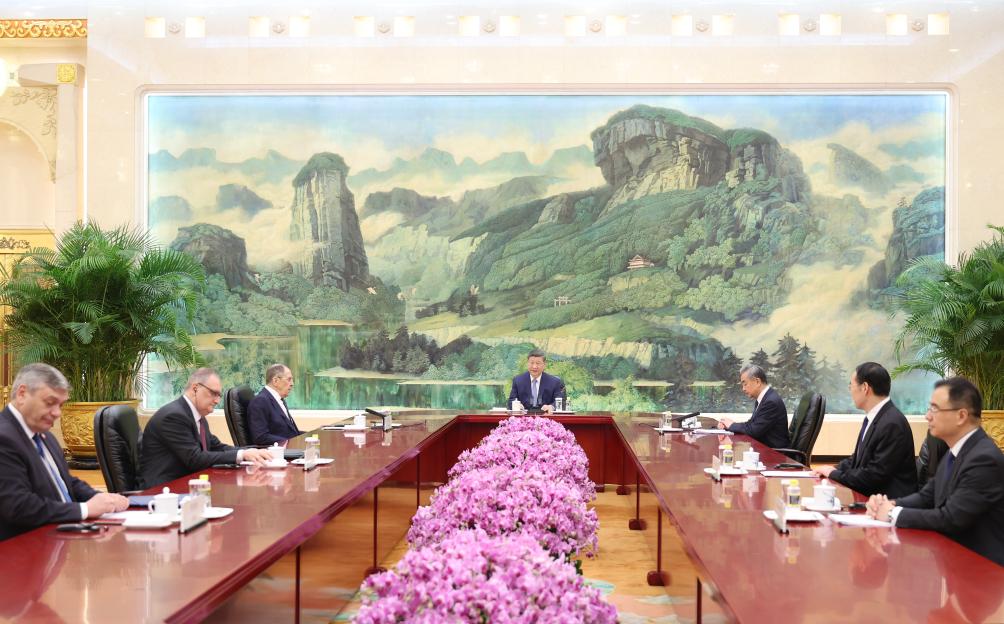 Chinese President Xi Jinping meets with Russian Foreign Minister Sergey Lavrov at the Great Hall of the People in Beijing, capital of China, July 15, 2025. (Xinhua)