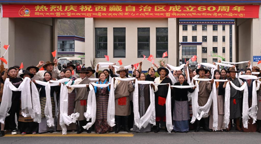 Chinese President Xi Jinping, also general secretary of the Communist Party of China Central Committee and chairman of the Central Military Commission, and the delegation receive a warm welcome from people of various ethnic groups in Xizang at the airport and in Lhasa's city proper, southwest China's Xizang Autonomous Region, Aug. 20, 2025. Xi, who leads a central delegation, arrived in Lhasa, capital of Xizang, on Wednesday to attend activities in celebration of the region's 60th founding anniversary. (Xinhua/Xie Huanchi)