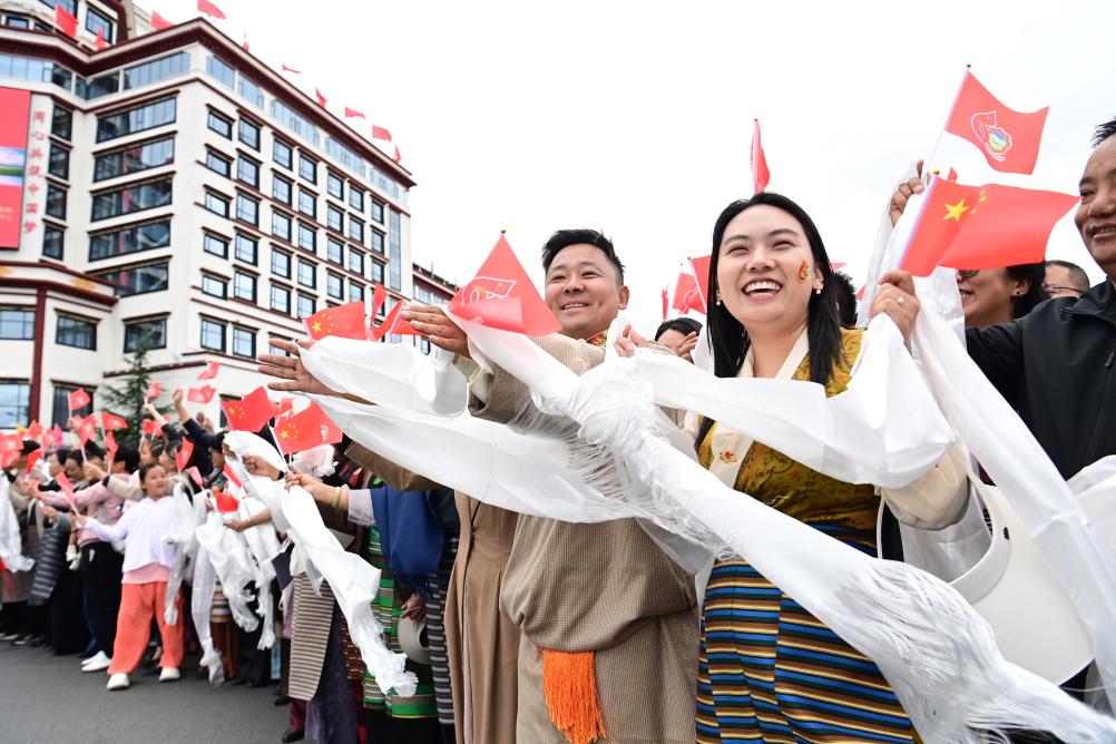 Chinese President Xi Jinping, also general secretary of the Communist Party of China Central Committee and chairman of the Central Military Commission, and the delegation receive a warm welcome from people of various ethnic groups in Xizang at the airport and in Lhasa's city proper, southwest China's Xizang Autonomous Region, Aug. 20, 2025. Xi, who leads a central delegation, arrived in Lhasa, capital of Xizang, on Wednesday to attend activities in celebration of the region's 60th founding anniversary. (Xinhua/Ding Lei)