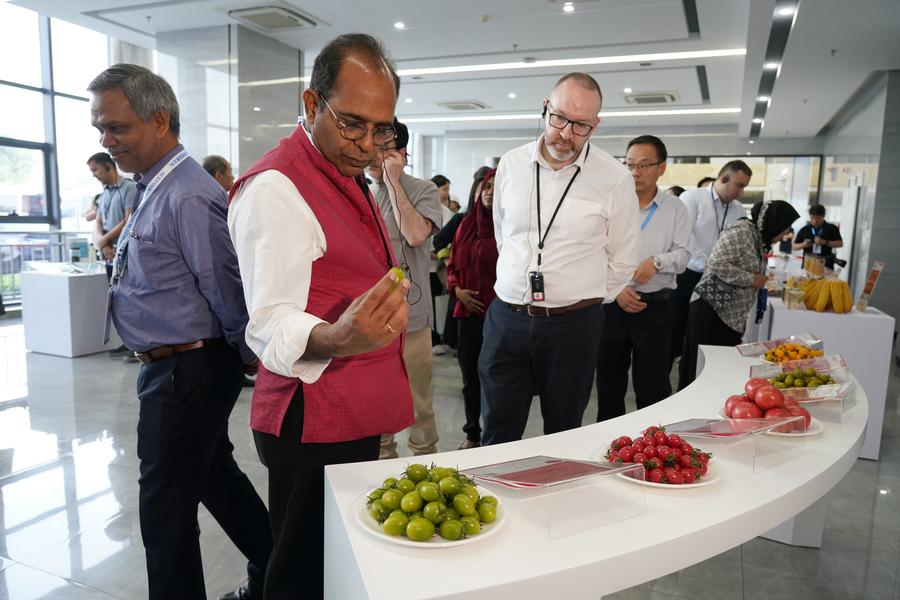 Attendees of the 2025 SCO (the Shanghai Cooperation Organization) Forum on Poverty Reduction and Sustainable Development visit an innovation center of seed industry in Yangling, northwest China's Shaanxi Province, May 19, 2025. (Xinhua/Shao Rui)