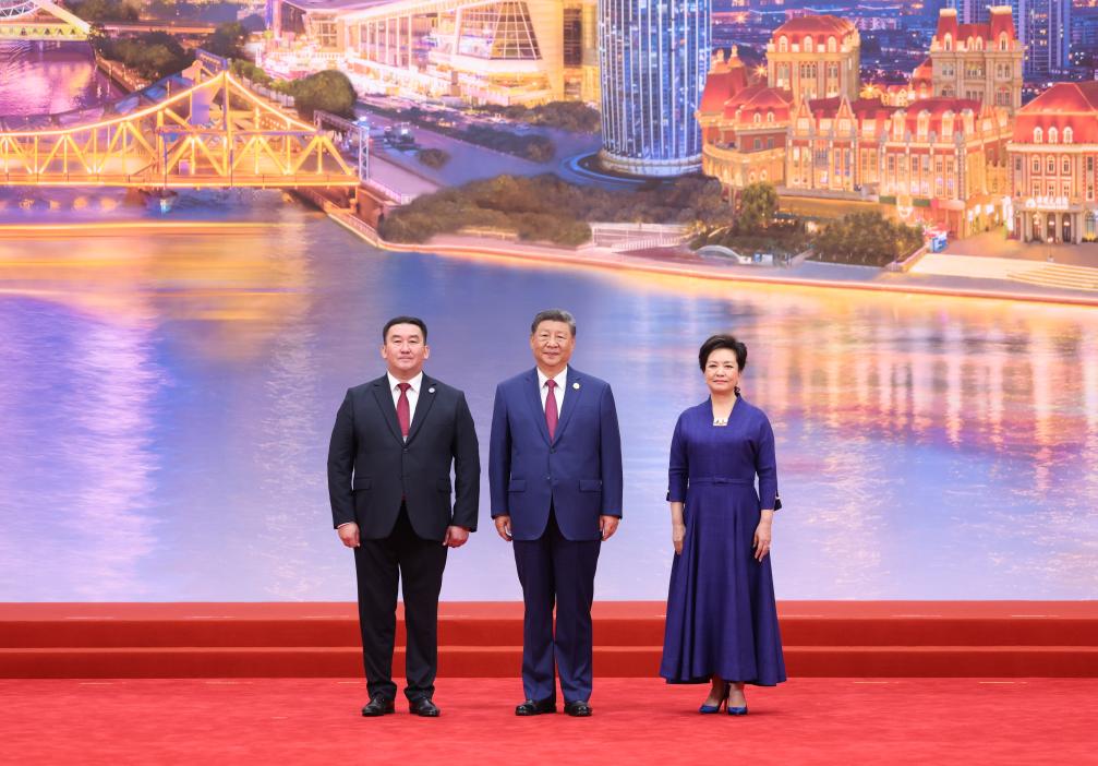 Chinese President Xi Jinping and his wife, Peng Liyuan, pose for a group photo with Director of the Executive Committee of the Shanghai Cooperation Organization (SCO) Regional Anti-Terrorist Structure Ularbek Sharsheev at the Meijiang Convention and Exhibition Center in Tianjin, north China, Aug. 31, 2025. Xi and Peng on Sunday hosted a banquet in China's port city of Tianjin to welcome international guests who are here to attend the Shanghai Cooperation Organization (SCO) Summit 2025. (Xinhua/Ding Haitao)