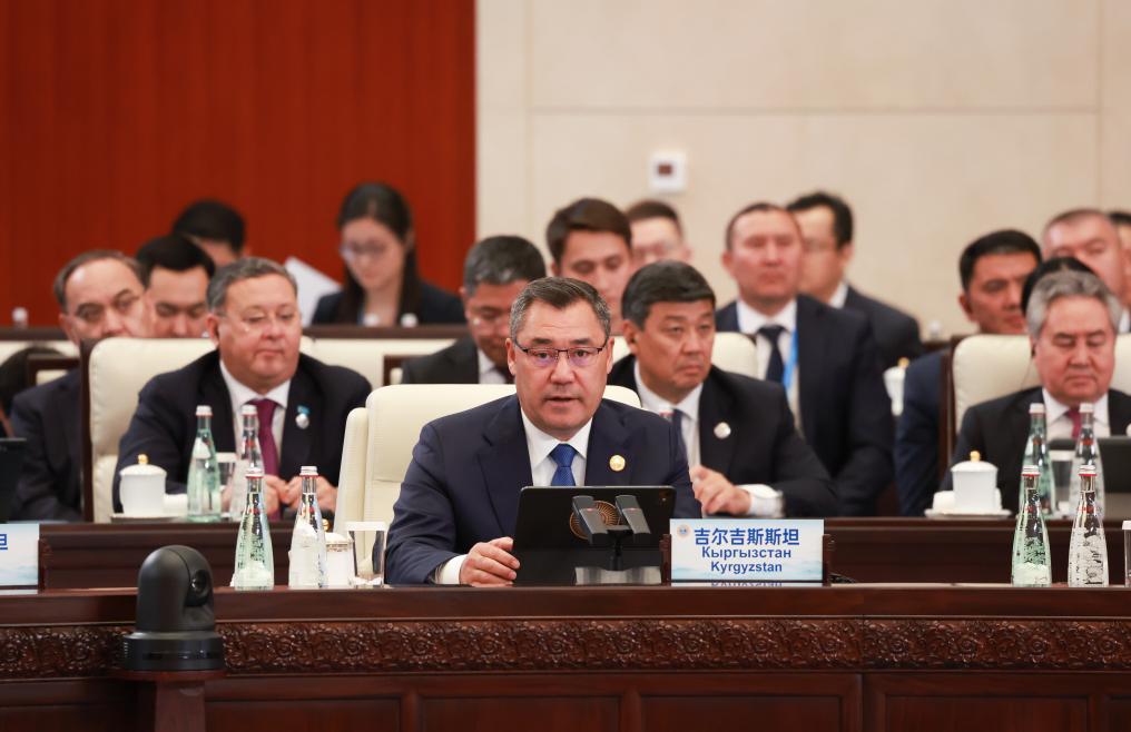 Kyrgyz President Sadyr Japarov attends the "Shanghai Cooperation Organization (SCO) Plus" Meeting in Tianjin, north China, Sept. 1, 2025. The Shanghai Cooperation Organization (SCO) convened the "SCO Plus" Meeting on Monday afternoon in north China's port city of Tianjin. (Xinhua/Ding Haitao)