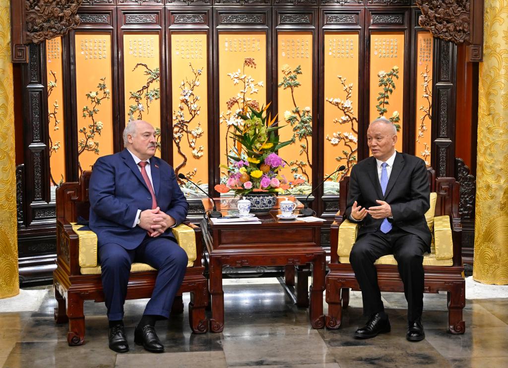 Cai Qi, a member of the Standing Committee of the Political Bureau of the Communist Party of China (CPC) Central Committee and a member of the Secretariat of the CPC Central Committee, meets with Belarusian President Alexander Lukashenko in Beijing, capital of China, Sept. 2, 2025. Lukashenko is in China for the Shanghai Cooperation Organization Summit 2025, as well as commemorations marking the 80th anniversary of the victory in the Chinese People's War of Resistance against Japanese Aggression and the World Anti-Fascist War. (Xinhua/Yin Bogu)