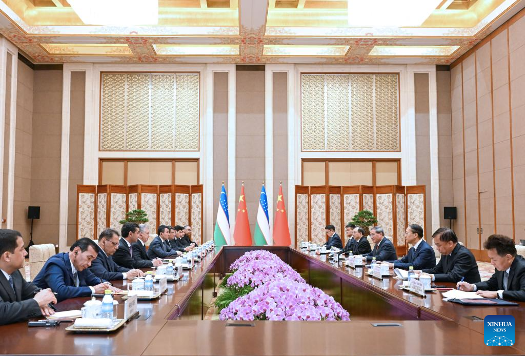 Chinese Premier Li Qiang meets with Uzbek President Shavkat Mirziyoyev at the Diaoyutai State Guesthouse in Beijing, capital of China, Sept. 2, 2025. Mirziyoyev is in China for the Shanghai Cooperation Organization (SCO) Summit 2025, as well as commemorations marking the 80th anniversary of the victory in the Chinese People's War of Resistance against Japanese Aggression and the World Anti-Fascist War. (Xinhua/Rao Aimin)