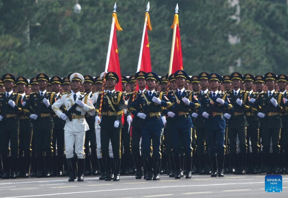 The People's Liberation Army (PLA) Guards of Honor formation attends a parade during a grand gathering to mark the 80th anniversary of the victory in the Chinese People's War of Resistance against Japanese Aggression and the World Anti-Fascist War in Beijing, capital of China, Sept. 3, 2025. (Xinhua/Wu Gang)