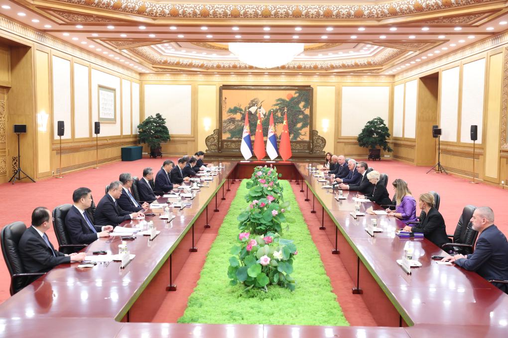 Chinese President Xi Jinping meets with Serbian President Aleksandar Vucic at the Great Hall of the People in Beijing, capital of China, Sept. 4, 2025. Vucic is in China for the commemorations marking the 80th anniversary of the victory in the Chinese People's War of Resistance against Japanese Aggression and the World Anti-Fascist War. (Xinhua/Huang Jingwen)