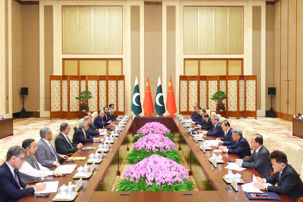 Chinese Premier Li Qiang meets with Pakistani Prime Minister Shehbaz Sharif at the Diaoyutai State Guesthouse in Beijing, capital of China, Sept. 4, 2025. Sharif is in China for the Shanghai Cooperation Organization Summit 2025, as well as commemorations marking the 80th anniversary of the victory in the Chinese People's War of Resistance against Japanese Aggression and the World Anti-Fascist War. (Xinhua/Liu Bin)