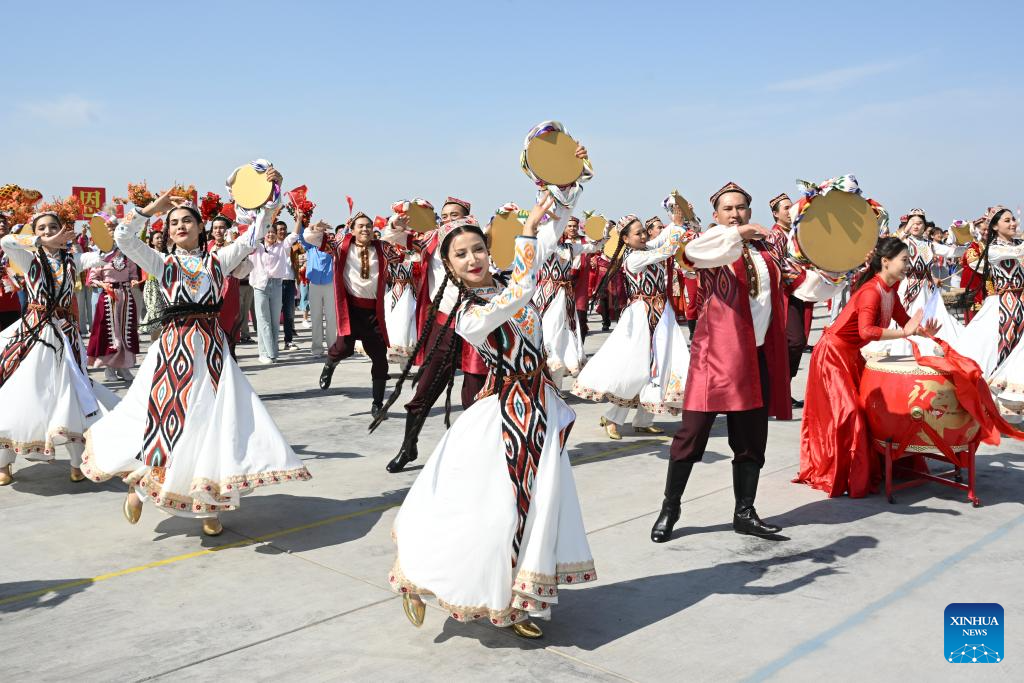 Chinese President Xi Jinping, also general secretary of the Communist Party of China Central Committee and chairman of the Central Military Commission, and the delegation receive a warm welcome from people of various ethnic groups at the Urumqi Tianshan International Airport and in Urumqi's city proper, northwest China's Xinjiang Uygur Autonomous Region, Sept. 23, 2025. Xi, who leads a central delegation, arrived in Urumqi, capital of Xinjiang Uygur Autonomous Region, on Tuesday to attend activities marking the region's 70th founding anniversary. (Xinhua/Xie Huanchi)