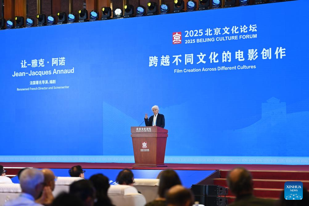 French director and screenwriter Jean-Jacques Annaud delivers a speech titled "Film Creation Across Different Cultures" during the 2025 Beijing Culture Forum in Beijing, capital of China, Sept. 23, 2025. The 2025 Beijing Culture Forum opened here on Tuesday, drawing participants from home and abroad to discuss the integrated development of culture and technology. (Xinhua/Xiao Xiao)
