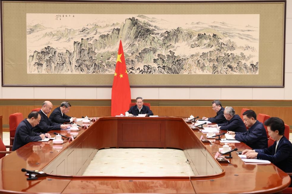 Chinese Premier Li Qiang, who is also secretary of the leading Party members group of the State Council, presided over a meeting convened by the leading Party members group of China's State Council to study and implement the spirit of the fourth plenary session of the 20th Central Committee of the Communist Party of China (CPC).
