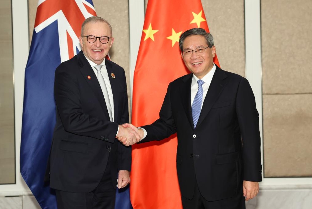 China is willing to strengthen the alignment of development strategies and policy coordination with Australia, Li said, expressing China's readiness to leverage the role of institutional dialogues, including the China-Australia Strategic Economic Dialogue and the joint economic commission, and to actively explore ways to advance the review and upgrading of the bilateral free trade agreement.