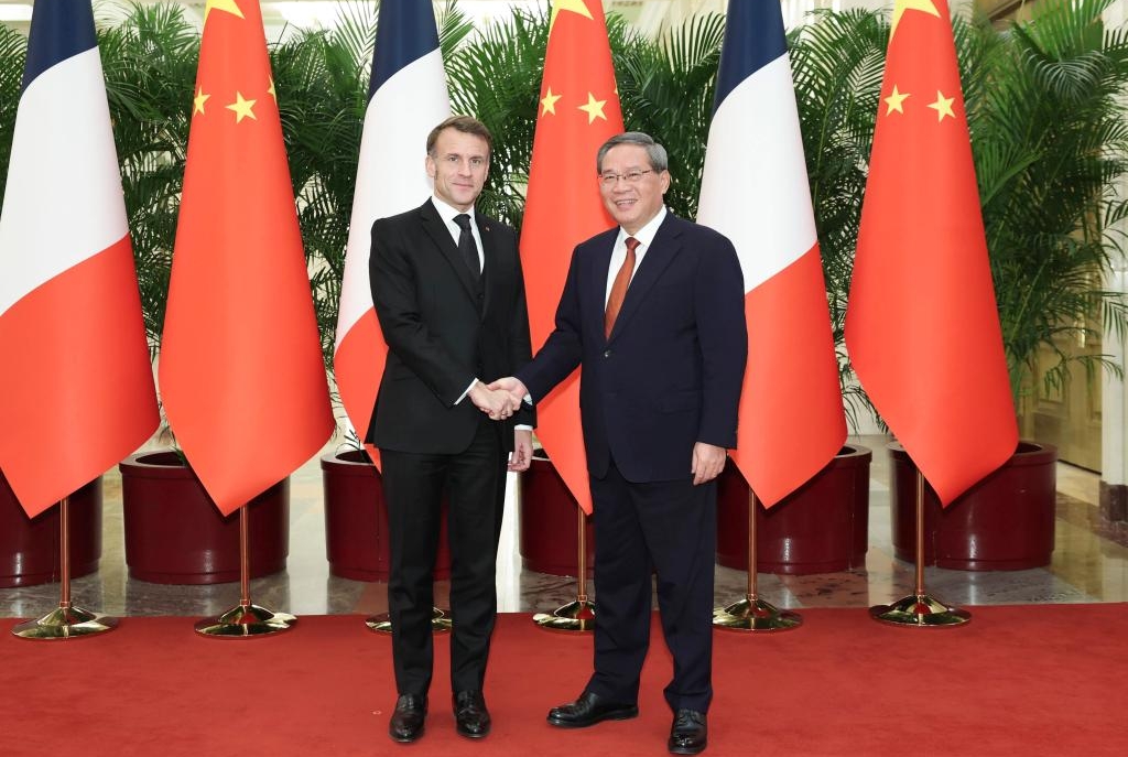 The premier said that China is willing to strengthen its development-strategy alignment with France, expand two-way openness, strengthen cooperation in traditional fields such as aviation, aerospace and civil nuclear energy, and promote cooperation in emerging areas such as artificial intelligence, green development and the silver economy. China also supports its enterprises in investing in France, and hopes that France will provide a fair, just and favorable business environment.