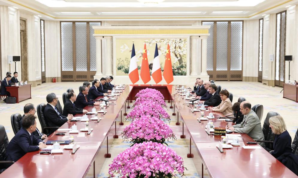 Chinese Premier Li Qiang meets with French President Emmanuel Macron, who is on a state visit to China, at the Great Hall of the People in Beijing, capital of China, Dec. 4, 2025. (Xinhua/Huang Jingwen)