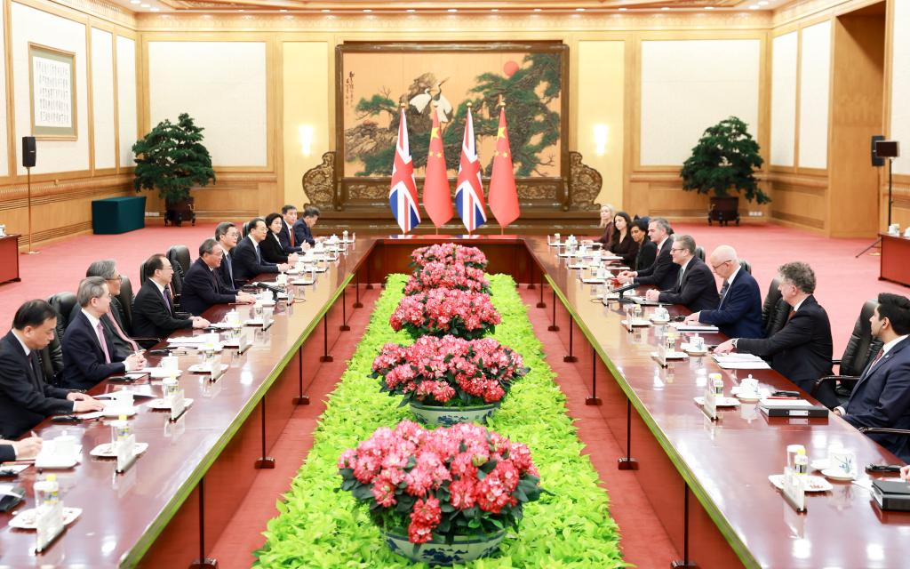 Chinese Premier Li Qiang holds talks with British Prime Minister Keir Starmer, who is on an official visit to China, at the Great Hall of the People in Beijing, capital of China, on Jan. 29, 2026. (Xinhua/Ding Haitao)