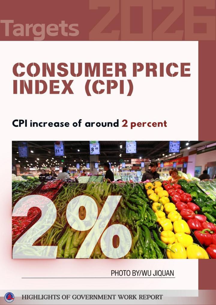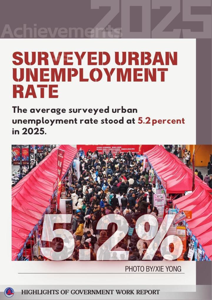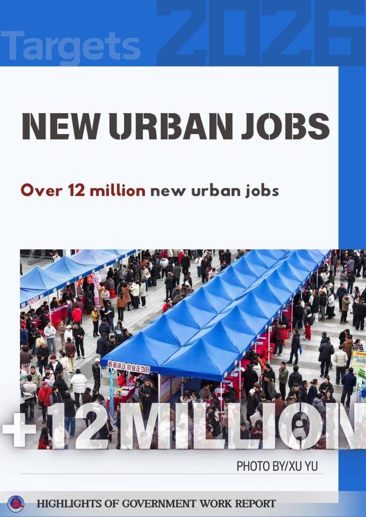 The posters below show some highlights of China's achievements in development in 2025 and the main targets for development in 2026 as mentioned in the report.