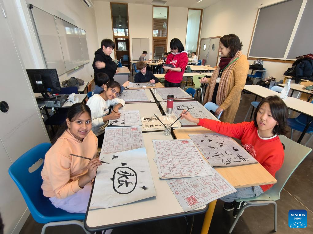Students of the Provence-Alpes-Cote d'Azur International School write Chinese calligraphy in Manosque, France, Feb. 5, 2026. Chinese President Xi Jinping recently replied to a letter from teachers and students of the Chinese language class at the Provence-Alpes-Cote d'Azur International School in France, extending his best wishes to them as well as all the teachers and students of the school. (Xinhua)
