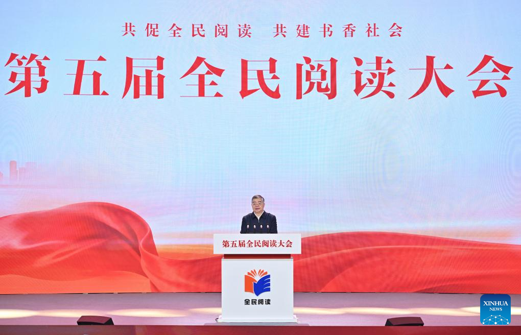 Li Shulei, a member of the Political Bureau of the Communist Party of China (CPC) Central Committee and head of the Publicity Department of the CPC Central Committee, attends the fifth National Conference on Reading and delivers a speech in Nanchang, east China's Jiangxi Province, April 20, 2026. Li announced the launch of this year's national reading week here on Monday. (Xinhua/Li Xin)
