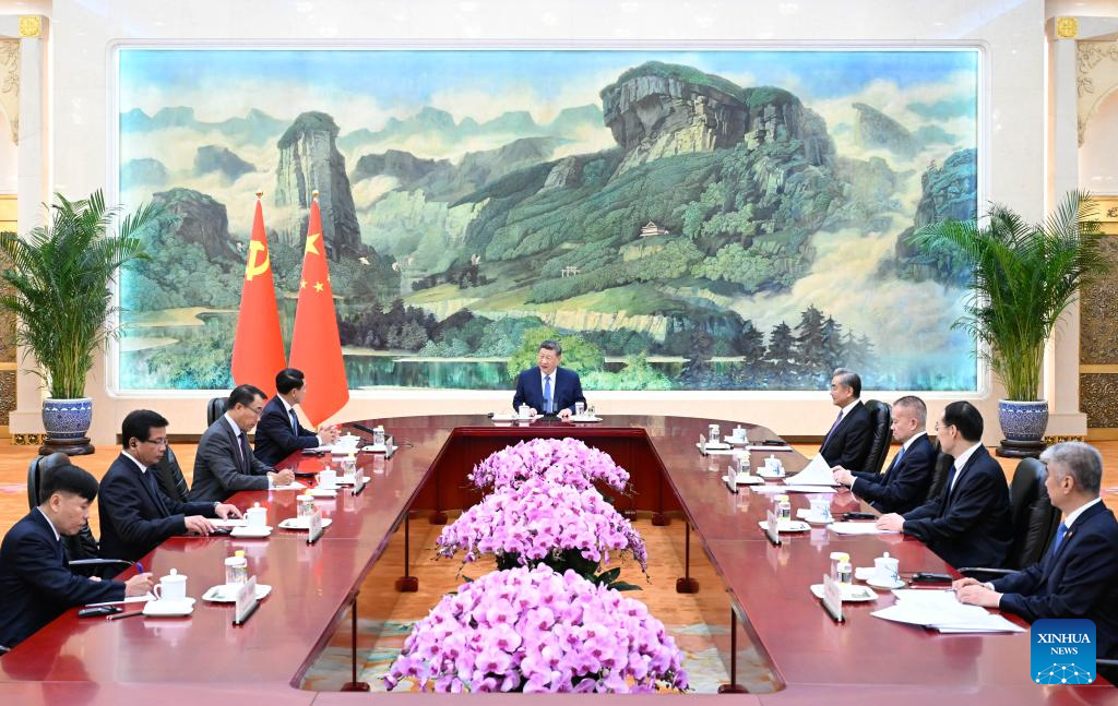 Xi Jinping, general secretary of the Communist Party of China Central Committee and Chinese president, meets with Saleumxay Kommasith, who is the special envoy of General Secretary of the Lao People's Revolutionary Party Central Committee and President of Laos Thongloun Sisoulith, at the Great Hall of the People in Beijing, capital of China, on April 21, 2026. (Xinhua/Shen Hong)