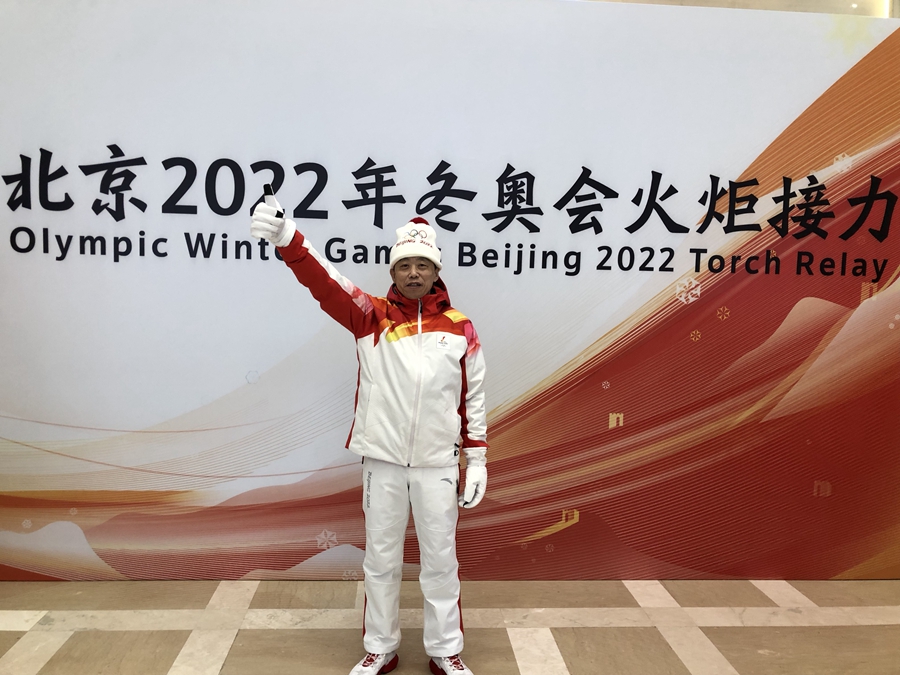 He Jun, torchbearer for the 2022 Beijing Winter Olympics and chief translator at China International Communications Group. [Photo provided to China.org.cn]