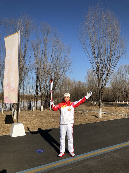 He Jun, torchbearer for the 2022 Beijing Winter Olympics and chief translator at China International Communications Group. [Photo provided to China.org.cn]