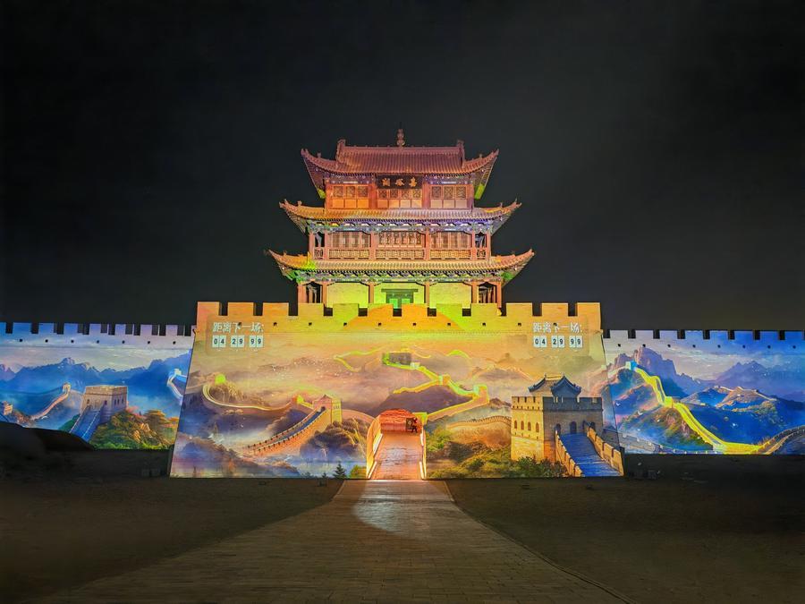A light show is staged in Jiayu Pass in Jiayuguan City, northwest China's Gansu Province, on Oct. 28, 2025. (Xinhua/Wang Yiliang)