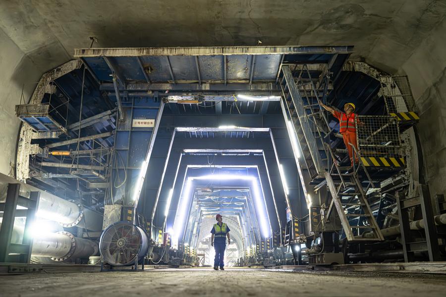 The 4,011-meter-long Yangtze River tunnel of the Wuhan Metro Line 12 achieved a tunnelling breakthrough on Wednesday in Wuhan, central China's Hubei Province. The Wuhan Metro Line 12, which is 59.9 kilometers long, is currently the longest loop metro line in the country.