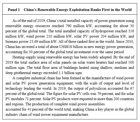China is committed to driving an energy revolution. As a result, major changes have taken place in the production and use of energy and historic achievements have been realized in energy development. Energy production and consumption are being optimized, energy efficiency has increased significantly, and energy use has become more convenient for both work and life. China's capacity to ensure energy security has been strengthened. All this provides important support to quality economic development, victory in the battle against poverty, and building a moderately prosperous society in all respects.