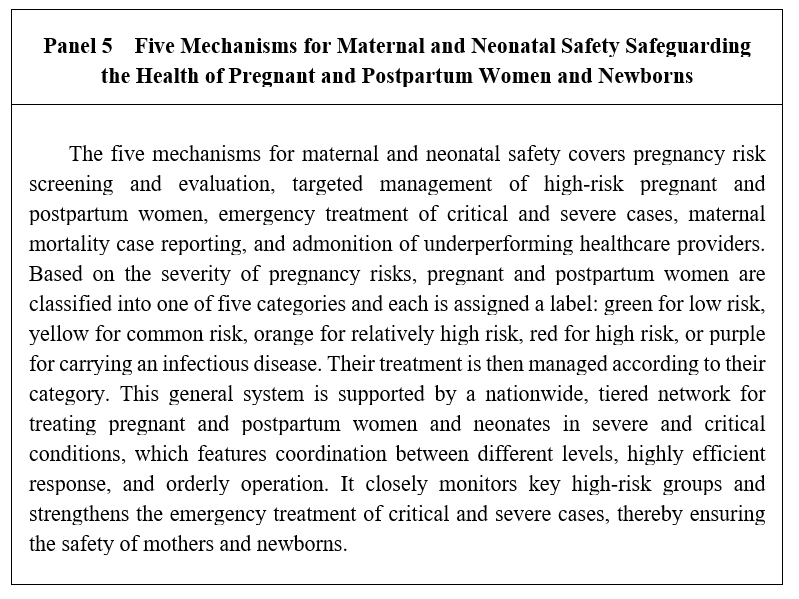The "internet plus maternal and child healthcare" service model has been developed, and training sessions and guidance for treating pregnant and postpartum women in severe and critical conditions have been provided through 31 provincial-level "cloud-based maternal and child healthcare" telemedicine platforms, making maternal and child healthcare services much more equitable.