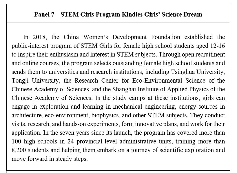 Women's scientific literacy is on the rise. The Chinese government has promulgated the Outline of the Action Plan for Improving Scientific Literacy for All (2021-2035), which covers raising women's scientific literacy.
