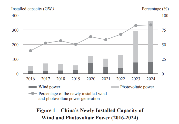 Vigorously developing wind and photovoltaic power. China emphasizes both centralized and distributed power generation. It is actively promoting the construction of large-scale wind and photovoltaic power bases on infertile and rocky terrain and in deserts, steadily developing offshore wind farms, actively promoting rooftop photovoltaic power generation in urban and rural areas, and encouraging distributed wind power generation in rural areas. By the end of August 2025, the installed capacity of wind and photovoltaic power had surpassed 1,690 GW, triple that of 2020 and accounting for about 80 percent of the newly installed power generation capacity since 2020. The percentage of wind and photovoltaic power is steadily increasing at an average annual rate of 2.2 percentage points.